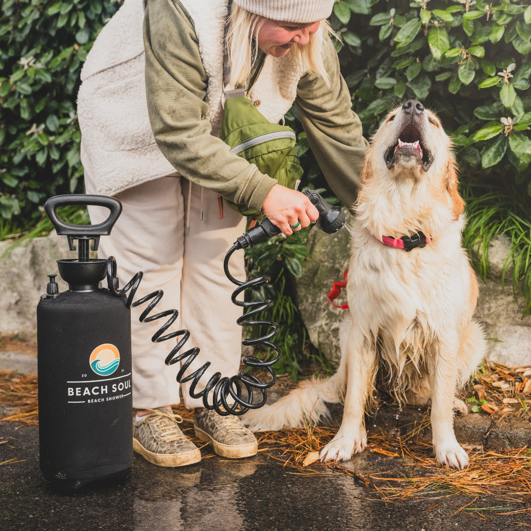A portable dog-friendly shower is an absolute summer must-have.