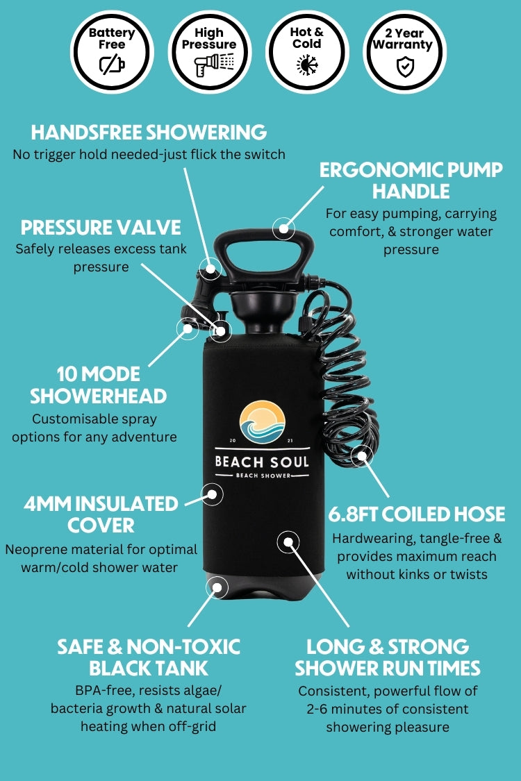 Whether you're rinsing off the dog, cooling down after a hike, or washing off at the beach, the Beach Soul Portable Shower range keeps things easy and clean wherever the trail takes you. Designed for outdoor simplicity, it’s your go-to for relaxed, clean moments in the wild.
