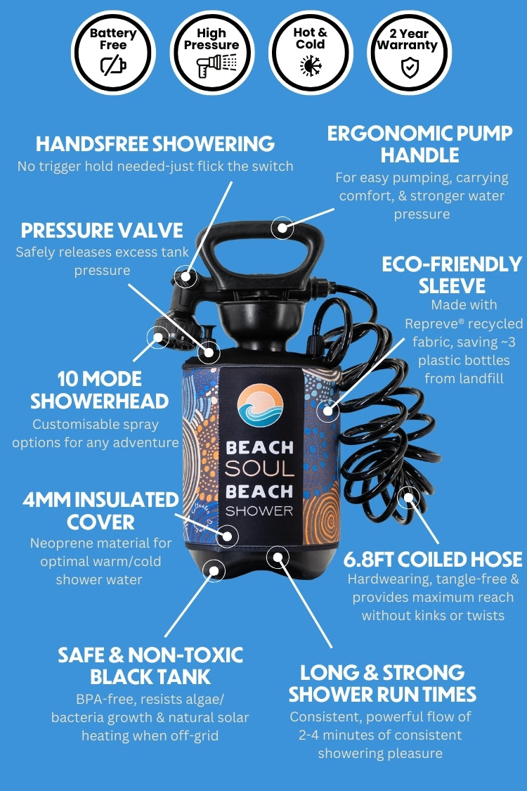 Flick the water switch to instantly de-sand, de-salt & de-stress your daily adventures & enjoy true shower freedom!
