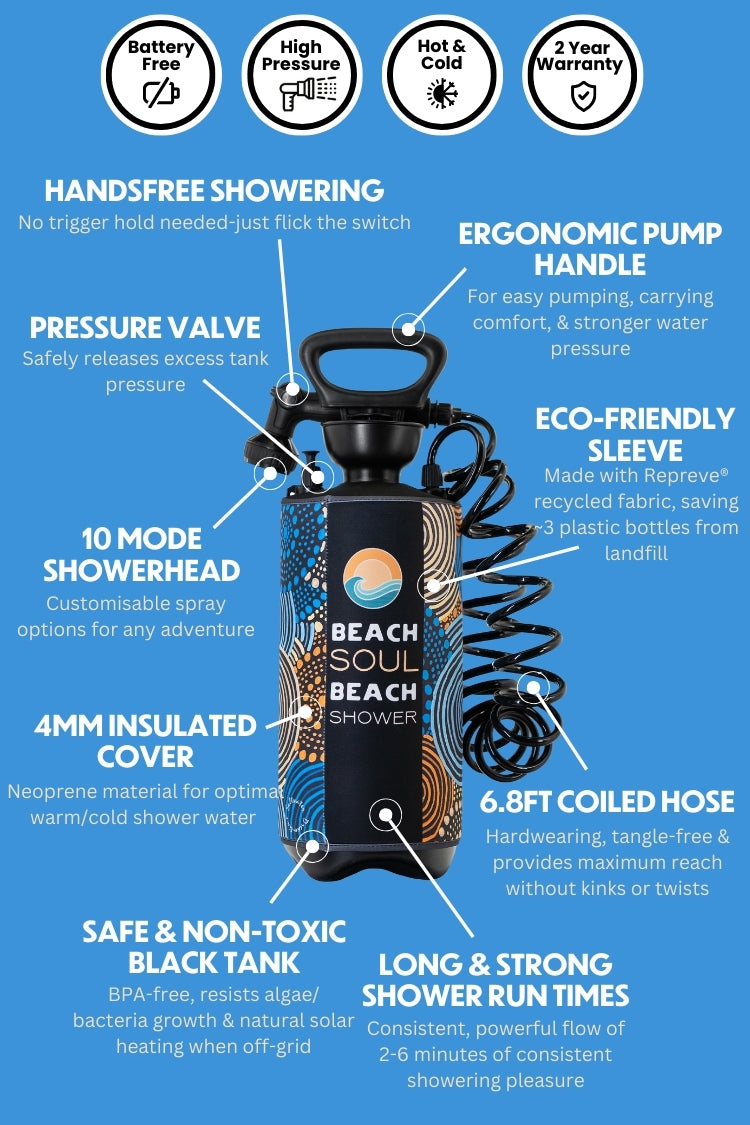 This limited edition portable shower combines everyday function with meaningful design — created to make freshen-ups outdoors feel effortless and inspiring.