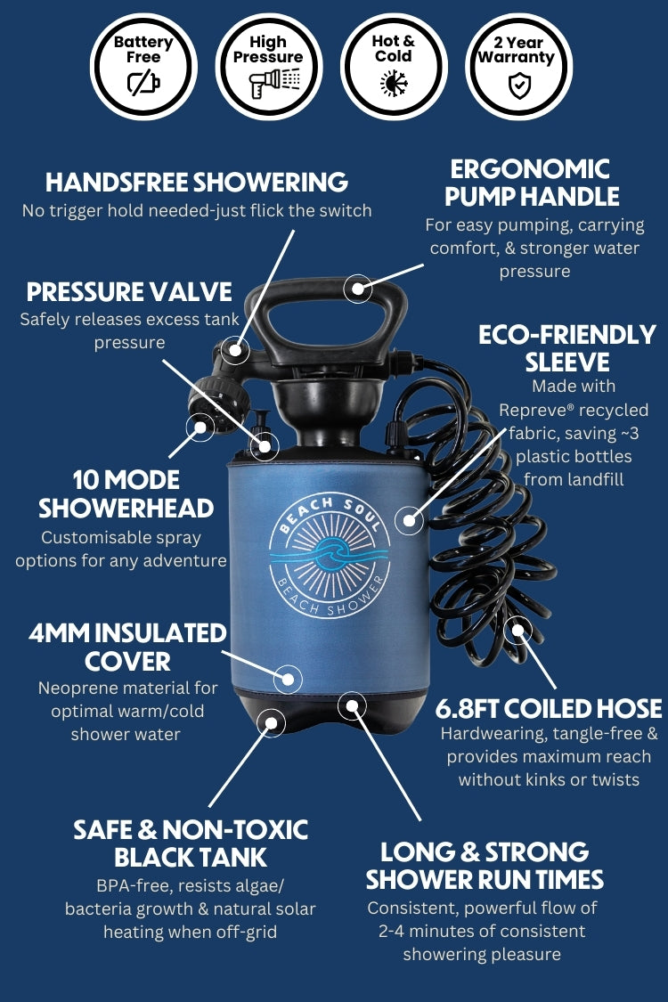 Enjoy the Outdoors with Total Shower Freedom: This light, beach-loving portable shower delivers pressurized rinse-offs & calm vibes for fast clean-ups, quick resets, or sandy pups on the go.