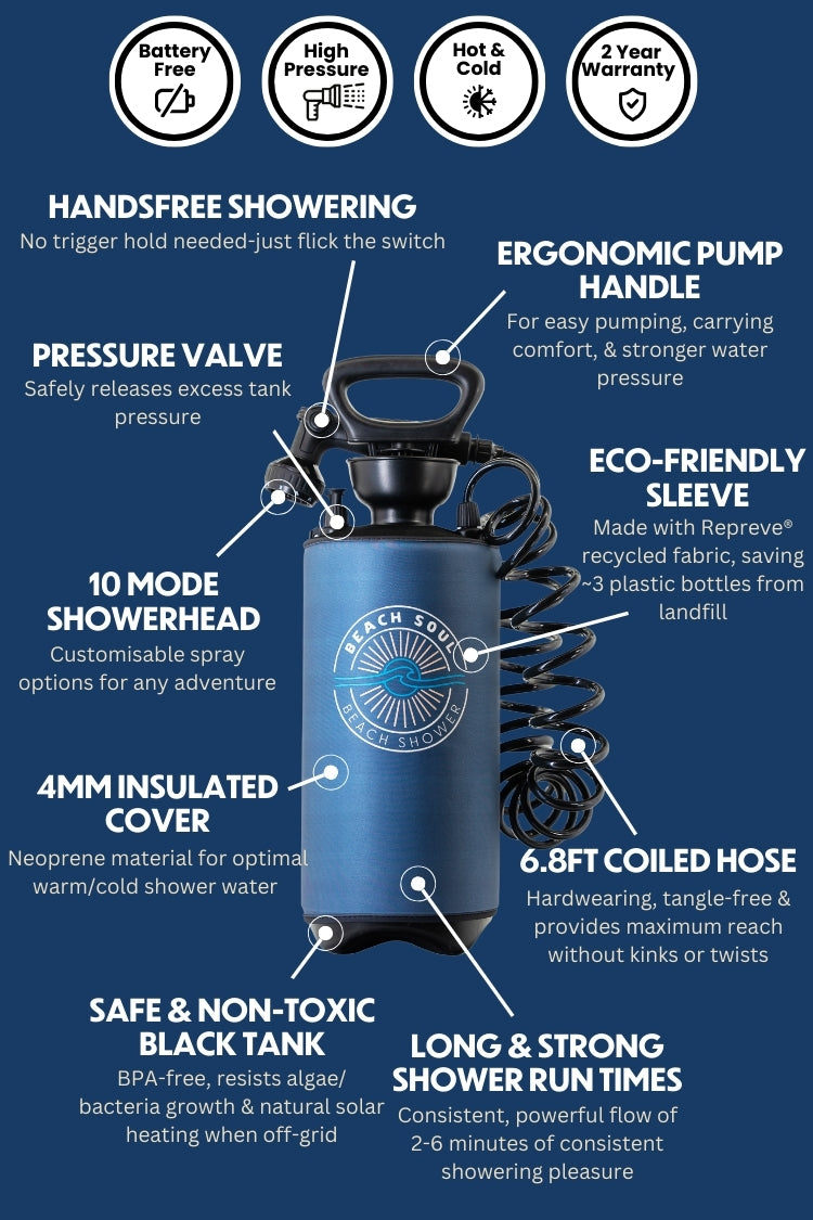 Flick the water switch to instantly de-sand, de-salt & de-stress your daily adventures & enjoy true shower freedom!