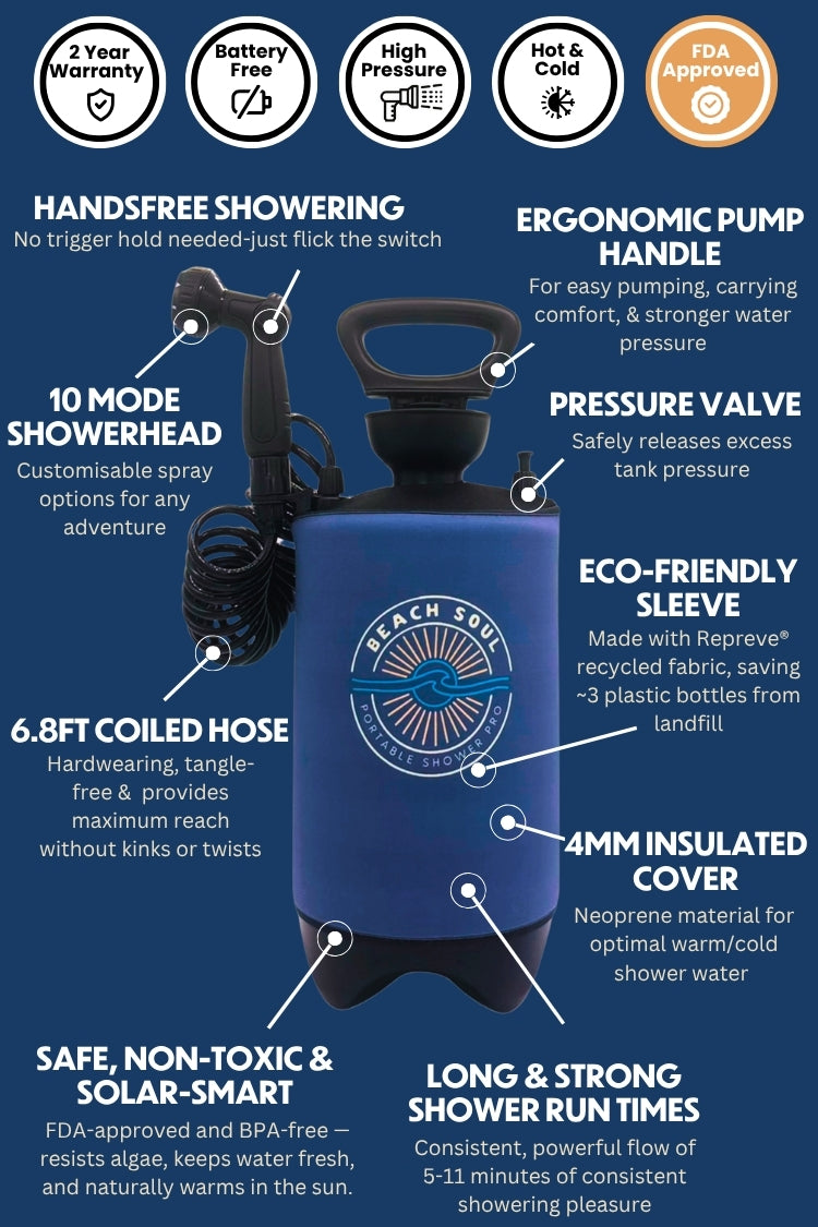 OUTDOOR ADVENTURES JUST GOT EASIER: The 2.6G Ocean Rise PRO Portable Shower